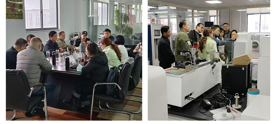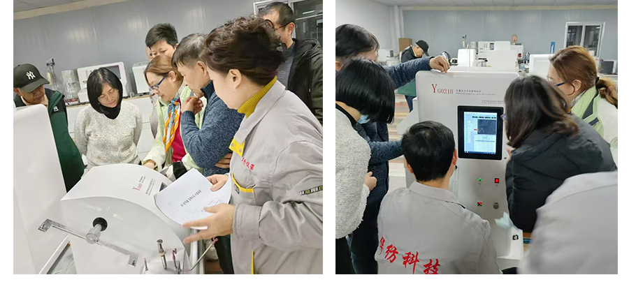 專家教授們制定國家標(biāo)準(zhǔn),前來常州華紡儀器,在儀器上邊做試驗(yàn)邊討論。